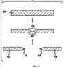 Фиг.4 представляет собой блок-схему способа изготовления бритвенных лезвий, которая также обеспечивает виды в разрезе полосового материала и лезвий бритвы;