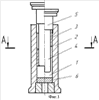 Пример 1. Проводилось изготовление детали типа “стакан” за один штамповочный переход методом обратного прессования из высокопрочного алюминиевого сплава В95ПЧ. Исходная заготовка 125×100 мм, весом 3,840 кг нагревалась до температуры 400±10°С в камерной печи сопротивления. В нагретую оснастку до температуры 400±10°С укладывали заготовку, нагретую до температуры 400°С, далее опускали в матрицу технологическое кольцо с размерами 125× 106×L, где L=150. Затем наносили смазку, предварительно нагретую до 110°С. Деформировали заготовку под определенным давлением и выдерживали 10 15 секунд. Поднимали пуансон, извлекали кольцо, вновь наносили смазку, деформировали заготовку под давлением с выдержкой 20 30 секунд. Поднимали пуансон, извлекали деталь из матрицы. При этом заполнение торца заготовки, рельефа донной части было качественным. В результате изготовления получена деталь высотой 285 мм, наружный диаметр 125, внутренний 106.