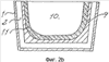 На фиг.2а показан первый шаблон 8 большего размера, который снабжен выпускными отверстиями для диоксида углерода (на чертеже не показано), между этим шаблоном и постоянной футеровкой 2 расположен первый порошковый слой 9, содержащий жидкое стекло, и как только этот слой затвердел в результате подачи углекислого газа, шаблон 8 удаляют и заменяют шаблоном 10 несколько меньшего размера, который также имеет выпускные отверстия для диоксида углерода, после чего между этим шаблоном и предыдущим порошковым слоем 9 загружают новый порошковый слой 11 и затем отверждают этот второй порошковый слой, после чего шаблон может быть удален, и разливочная форма готова к использованию.