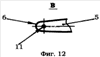 – на фиг.12 показана поз.В фиг.11 – увеличенный вид лопатки со стороны торца пера в месте расположения отправного отверстия;