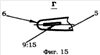 – на фиг.15 показана поз.Г фиг.14 – увеличенный вид лопатки со стороны торца пера в месте расположения сквозного канала.