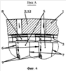 – на фиг.3 показан фрагмент продольного сечения направляющего аппарата осевого компрессора газовой турбины, иллюстрирующий принцип крепления лопаток в обойме;