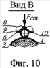 Частота воздействия статической Рст и импульсной Рим нагрузок зависят от скорости вращения Vи корпуса с деформирующими элементами. Величина статической Рст нагрузки устанавливается путем поперечной подачи Sп всего устройства, осуществляемой вручную. Величина импульсной нагрузки Рим обеспечивается высотой h выступа 9 относительно впадины 10.
