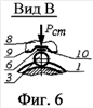 Деформирующие элементы 3 закреплены на одних концах пластинчатых пружин 6, изготовленных, например, из стальной холоднокатаной ленты согласно ГОСТ 21996-76. Пластинчатые пружины 6 радиально и жестко закреплены другими концами на торце корпуса 4. Деформирующие элементы 3 закреплены на одном диаметре D, который выбирается по конструктивным соображениям. Деформирующие элементы 3 могут быть закреплены на пластинчатых пружинах 6 как жестко, так и подвижно с использованием сепаратора. Вариант крепления деформирующих элементов 3 на пластинчатых пружинах 6 с использованием сепаратора 7 (см. фиг.4).