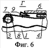 На внутренней поверхности внутреннего цилиндра жестко одним концом закреплены V-образно изогнутые пластинчатые пружины 7. Пластинчатые пружины 7 изготовлены, например, из стальной холоднокатаной ленты согласно ГОСТ 21996-76. На другом свободном конце пластинчатых пружин 7 установлены деформирующие элементы 3. Деформирующие элементы 3 могут быть закреплены на пластинчатых пружинах 7 как жестко, так и подвижно с использованием сепаратора. Вариант крепления деформирующих элементов 3 на пластинчатых пружинах 7 с использованием сепаратора 8 показан на фиг.6. На средней части пластинчатых пружин 7 закреплены кулачки 9, которые контактируют с внутренней, расположенной под углом к продольной оси, поверхностью волновода 6, таким образом, что при возвратно-поступательном продольном перемещении волновода кулачки и свободный конец пластинчатых пружин с деформирующими элементами будут перемещаться в радиальном направлении SП.