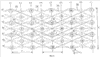 – второе волокно основы (соответственно 30, 33, 36, 39) соединяет верхнее промежуточное волокно утка (соответственно 2, 9, 16, 23) колонки (соответственно С1, С3, С5, С7) из четырех волокон утка с нижним промежуточным волокном утка (соответственно 17, 24, 3, 10) колонки (соответственно С5, С7, С1, С3) из четырех волокон утка, которая отстоит от предыдущей колонки, по меньшей мере, на два шага Р, при этом второе волокно основы возвращается на верхнее промежуточное волокно утка (соответственно 2, 9, 16, 23) колонки (соответственно С1, С3, С5, С7) из четырех волокон утка, которая отстоит от первой колонки, по меньшей мере, на четыре шага Р;