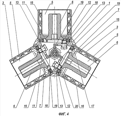 Фиг.3. Механизм управления углом атаки винта, разрез А-А на фиг.2.