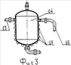 На Фиг.3 – представлена схема продольного вида промежуточного сборника с полутрубным наружным теплообменным устройством.