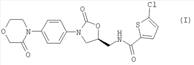 Соединение 5-хлор-N-({(5S)-2-оксо-3-[4-(3-оксо-4-морфолинил)-фенил]-1,3-оксазолидин-5-ил}-метил)-2-тиофенкарбоксамид известно из Международной заявки 01/47919 и отвечает формуле (I)