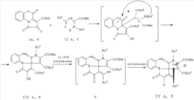 3. Способ получения метил 6,9-диарил-11-ароил-2-(о-гидроксифенил)-3,4,10-триоксо-7-окса-2,9-диазатрицикло[6.2.1.01,5]ундец-5-ен-8-карбоксилатов IV а, б: