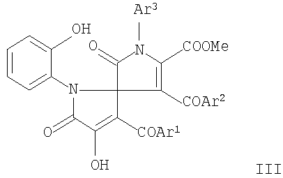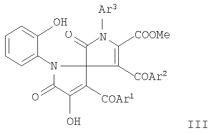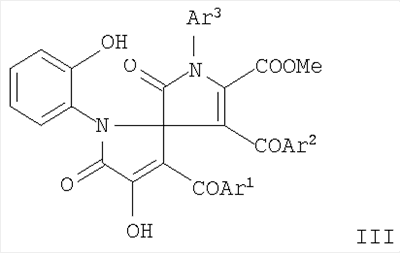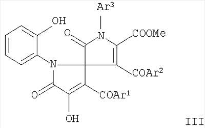 7-арил-4,9-диароил-3-гидрокси-1-(2-гидроксифенил)-2,6-диоксо-1,7-диазаспиро[4.4]нона-3,8-диен-8-карбоксилатам формулы III