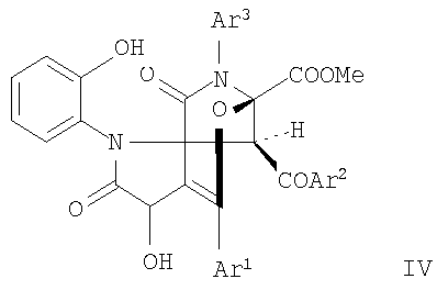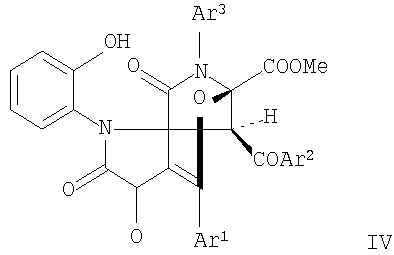 2. Метил 6,9-диарил-11-ароил-2-(о-гидроксифенил)-3,4,10-триоксо-7-окса-2,9-диазатрицикло[6.2.1.01,5]ундeц-5-eн-8-кapбoкcилaты общей формулы IV: