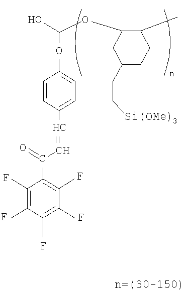 1. Олиго(4-[2-(триметоксисиланил)этил]-2-циклогексилокси)-гидроксиметоксифенил-1-пентафторфенилпропенон структурной формулы: