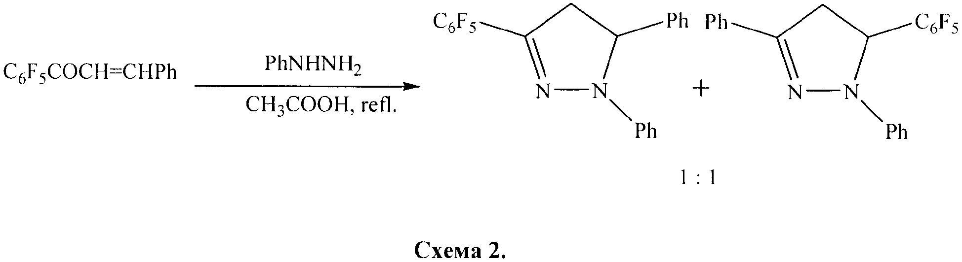 Исследование реакции 3-(4-оксиран-2-илметокси)фенил-1-(перфторфенил)проп-2-ен-1-она (1) с фенилгидразином показало, что она протекает аналогично реакции, приведенной на схеме 2.