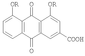 Реин (химическое название 4,5-дигидрокси-9,10-дигидро-9,10-диоксо-2-антраценкарбоновая кислота) имеет общую формулу (I)