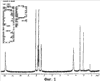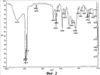 Спектр 1Н-ЯМР соединения HA-Re, полученного в примере 2, получали в дейтерированном буферном растворе, используя спектрометр Varian VRX300. Однако при интерпретации этого спектра возникали затруднения, поскольку доля реина, реагирующего с гиалуроновой кислотой, оказалась недостаточной для идентификации ароматического цикла. Поэтому, с учетом низкой растворимости реина в водной среде и обратимости реакции эстерификации, было проведено омыление, т.е. основный гидролиз, с целью получения реина из соединения HA-Re. Продукт омыления был осажден. Спектр 1Н-ЯМР продукта гидролиза был получен в диметилсульфоксиде (ДМСО) на спектрометре Varian VRX300. Полученный спектр, представленный на фиг.1, полностью совпадает со спектром реина.