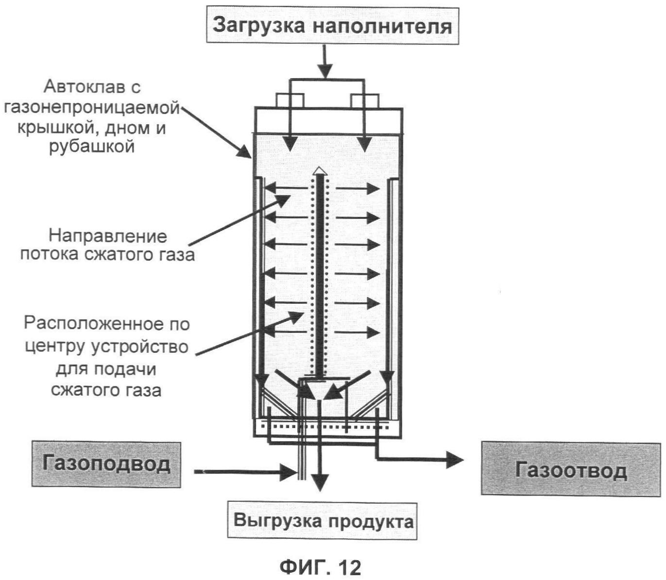 13. Устройство для осуществления способа по п.1, отличающееся тем, что оно состоит из по меньшей мере одного рассчитанного на работу под давлением аппарата с по меньшей мере одной газопроницаемой внутренней емкостью, сеткой или вставкой для размещения наполнителей и по меньшей мере одного находящегося в насыпном слое наполнителя устройства для подвода и отвода газа, которое обеспечивает радиальную подачу газа в насыпной слой наполнителя и, соответственно, радиальный отвод газа из насыпного слоя наполнителя.
