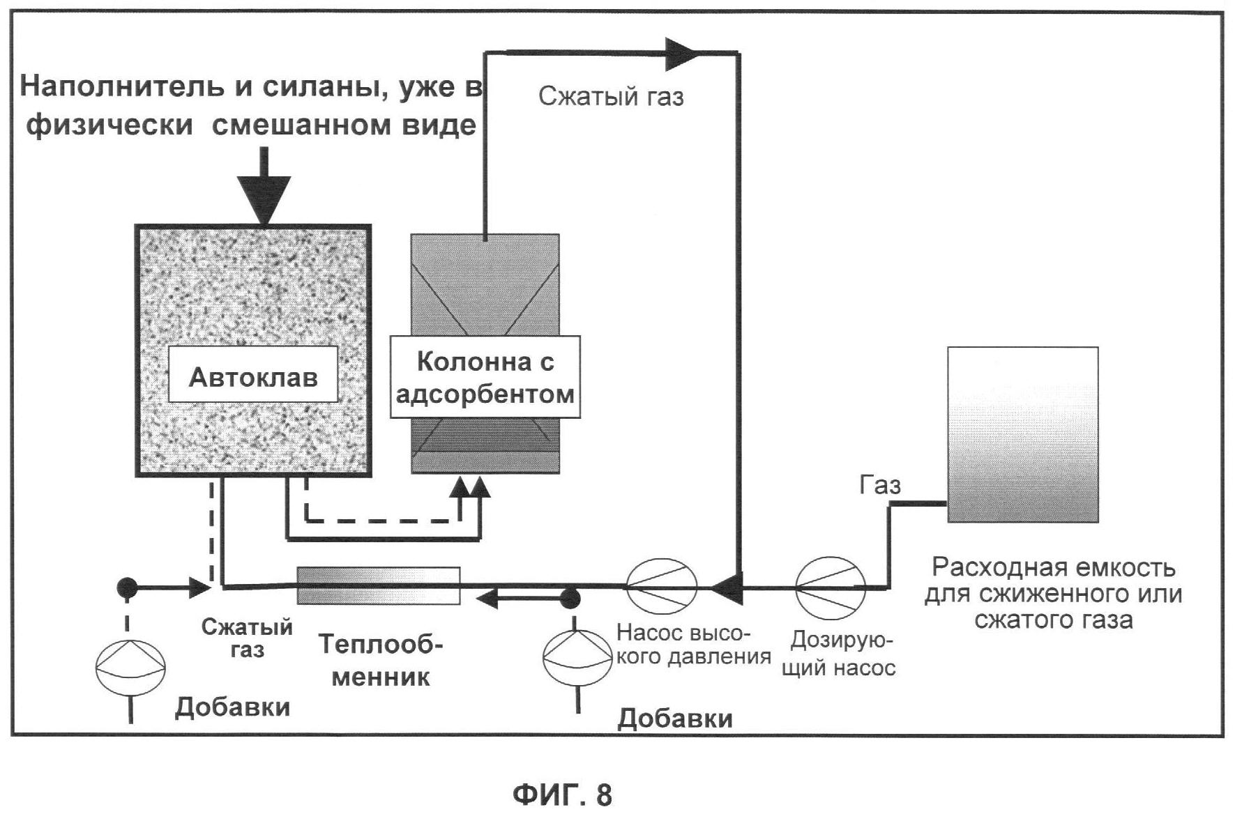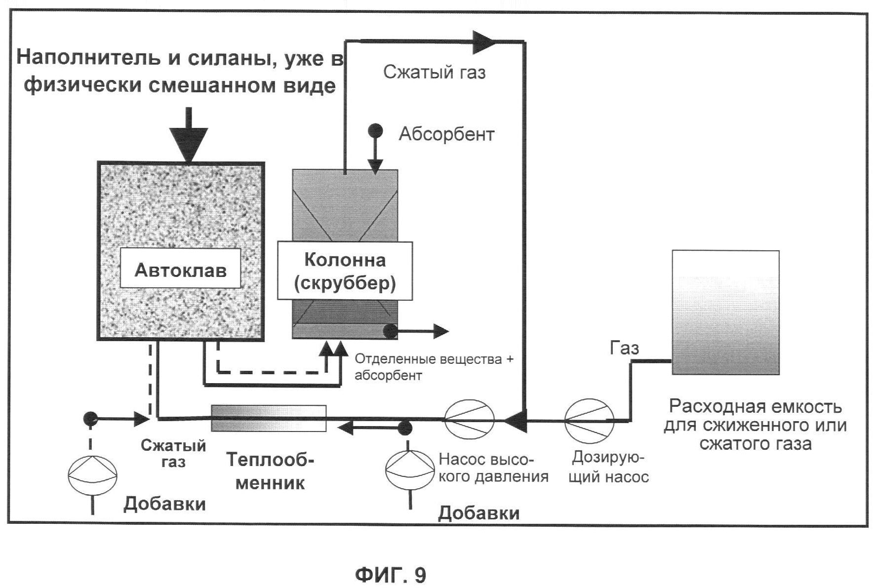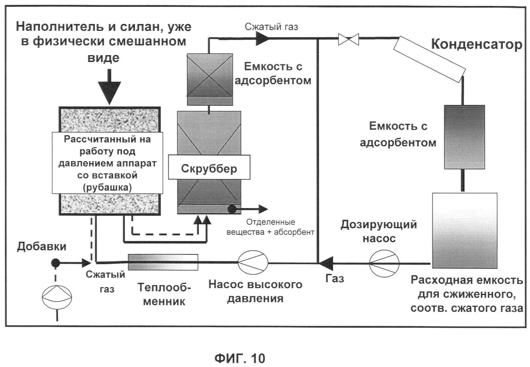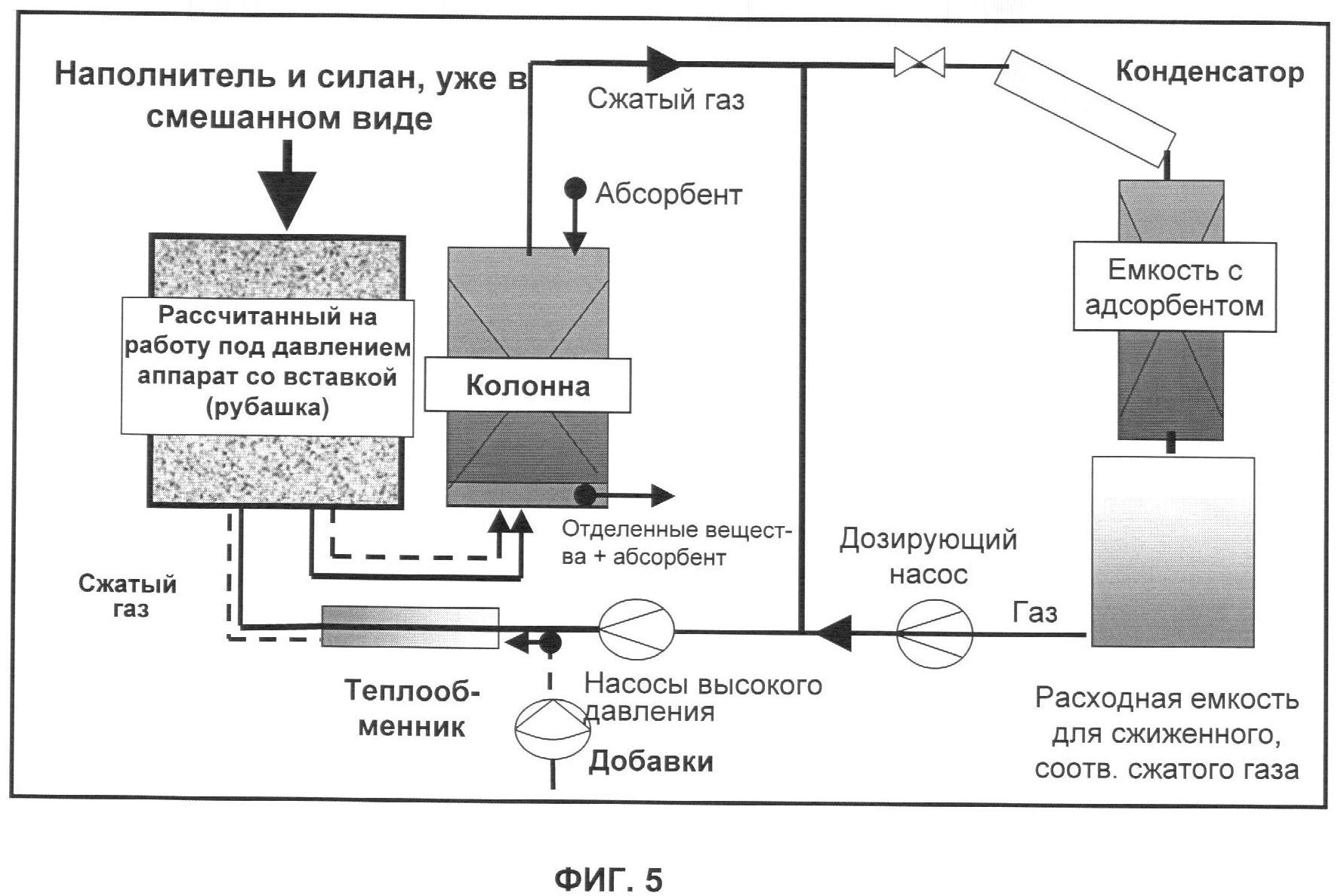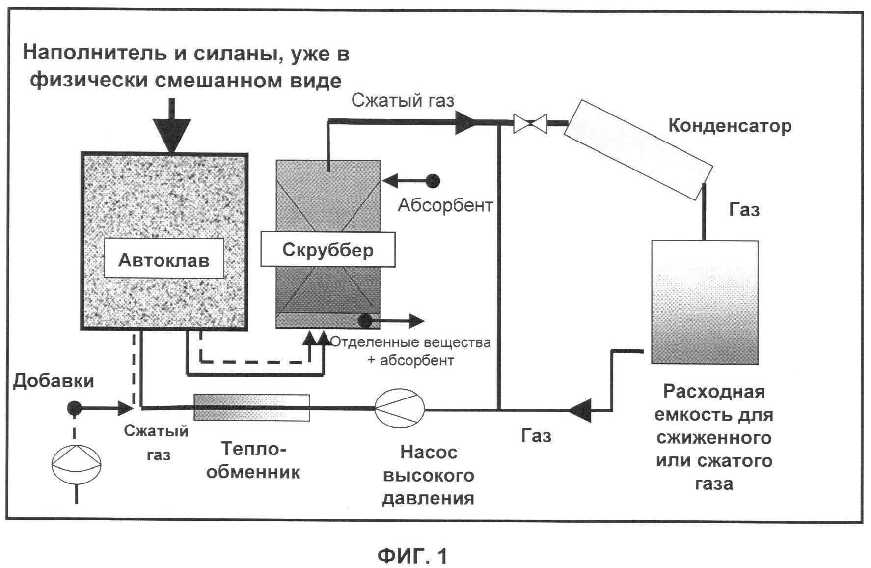 10. Способ по п.1, отличающийся тем, что модифицированный силаном оксидный или силикатный наполнитель в процессе его экстракционной обработки сжатым газом вводят в контакт с дополнительными добавками.