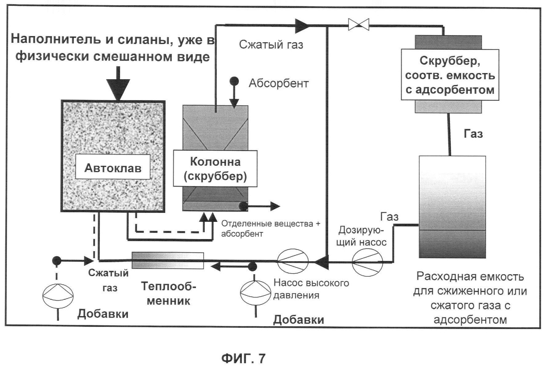 1. Способ экстракции веществ из по меньшей мере одного модифицированного силаном оксидного или силикатного наполнителя, отличающийся тем, что в качестве экстрагента используют по меньшей мере один сжатый под действием давления и/или температуры газ, который пропускают в рассчитанном на работу под давлением аппарате в радиальном направлении через наполнитель и/или из которого с помощью сорбента удаляют экстрагированные из модифицированного силаном наполнителя вещества.