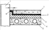 При установке виброактивного оборудования на плиту 1 происходит двухкаскадная виброзащита, за счет вибродемпфирующих вкраплений в саму массу плиты 1, а также за счет слоя вибродемпфирующего материала 3, в качестве которого могут быть использованы: иглопробивные маты типа «Вибросил» на базе кремнеземного или алюмоборосиликатного волокна, материал из твердых вибродемпфирующих материалов, например пластиката, из звукоизоляционных плит на базе стеклянного штапельного волокна типа «Шумостоп» с плотностью материала, равной 60÷80 кг/м3.