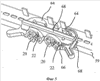 Обе зажимные колодки 14, 16 выполнены с короткими рычагообразными удлиняющими их частями (рукоятками) 65, которые обеспечивают возможность поворота обеих зажимных колодок 14, 16 вручную. Обе эти рычагообразные удлиняющие части 65 ориентированы таким образом перпендикулярно осям D поворота, образованным осями 18.
