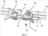 При нахождений обеих волнистых кромок на некотором расстоянии друг от друга их можно перемещать друг относительно друга в продольном направлении. При повороте же зажимных колодок 14, 16 в затянутое положение элемент 74 своей волнистой кромкой зацепляется с волнистой кромкой 72 рейки 71 и таким путем обеспечивает фиксацию элемента 74 и рейки 71 друг относительно друга в продольном направлении.