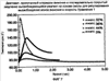 фиг.8 является графиком задержанного процесса экзотермической реакции, где начало экзотермической реакции задерживается с помощью задержанного высвобождения кислотной системы, но последующая реакция является неуправляемой.