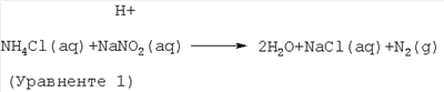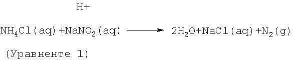 В соответствии с наиболее предпочтительным в настоящее время вариантом осуществления изобретения, предпочтительной экзотермической реакцией является катализируемая кислотами реакция между хлоридом аммония и нитритом натрия, как показано в следующей реакции (Уравнение 1):