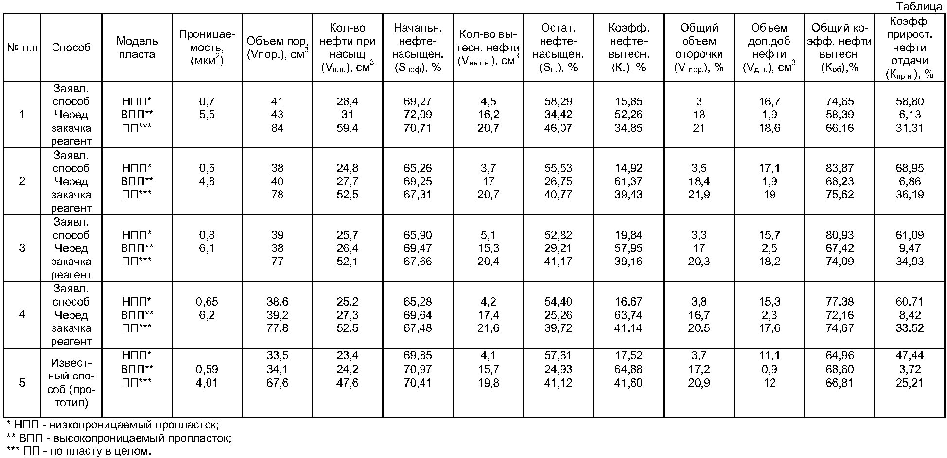 Изобретение относится к нефтедобывающей промышленности, в частности к способам разработки нефтяной залежи, представленной неоднородными пластами, и может быть использовано для повышения нефтеотдачи пластов и снижения обводненности добывающих скважин на поздней стадии эксплуатации месторождений. Известен способ разработки нефтяных пластов, преимущественно на поздней стадии эксплуатации, включающий последовательную закачку в пласт растворов полимеров класса полиакриламида, щелочи и соли двух- или трехвалентных металлов (см. патент РФ Данный способ недостаточно эффективен вследствие деструкции молекул полимера под действием солей пластовых и закачиваемых вод, снижения вязкости из-за адсорбции полимера на поверхности пор. Известен способ обработки нефтяных месторождений путем закачки в пласт водного раствора анионного полимера, неорганической или органической кислоты, растворимой в воде, для доведения рН среды от 0,5 до 2,5, жидкого стекла и соли поливалентного металла (см. патент РФ Этот способ недостаточно эффективен вследствие деструкции молекул полимера в минерализованных водах и недостаточной вязкости образуемой в пласте системы из-за потери сшивающего агента на породе пласта. Также при использовании в качестве сшивающего агента солей Cr+3 нарушается экологическая обстановка в нефтедобывающем регионе. Наиболее близким по технической сущности и достигаемому эффекту является способ разработки нефтяной залежи, включающий закачку в пласт водного раствора силиката натрия и структурообразующего реагента (патент на изобретение Известный способ недостаточно эффективен вследствие ограниченности области применения способа. Цеолитсодержащая порода с месторождения должна доставляться на завод глинопорошков, где подвергается предварительному измельчению, очистке от примесей и обработке. Все это увеличивает стоимость цеолитного материала. Необходимо отметить, что содержание ионов алюминия в цеолитной породе составляет около 2-6%. Это снижает устойчивость к размыву водой структурированной системы и эффект снижения скорости фильтрации жидкости в пласте достигается в основном за счет использования цеолита. В основу настоящего изобретения положена задача создать экологически безвредный для окружающей среды, эффективный способ разработки нефтяной залежи, позволяющий более эффективно воздействовать на обводненные пласты за счет перераспределения фильтрационных потоков и вовлечения в разработку зон с высокой нефтенасыщенностью, а также надежно изолировать водоприток к добывающим скважинам. Поставленная задача решается тем, что в способе разработки нефтяной залежи, включающем закачку в пласт растворов полимера, силиката натрия, структурообразующей системы, проведение технологической выдержки и нагнетание вытесняющего агента, в качестве структурообразующей системы берут суспензию самораспадающегося сепарированного шлака и раствор соляной кислоты. В преимущественном варианте осуществления способа закачки растворов полимера, силиката натрия, суспензии сепарированного самораспадающегося шлака и раствора соляной кислоты осуществляют раздельно. В качестве полимера используют: – Полиакриламид: accotrol S-622, DKS-ORP, РДА-1020 и др. – Сульфацелл (гидроксиэтилцеллюлоза), марок 1 или 2, ТУ 6-55-221-1473-97. – карбокси