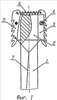 В рыхлых породах анкер может быть выполнен также в комбинации с раствором и мелкощебеночным бетоном (фиг.4). После досылки его в шпур (скважину) тросиком освобождаются расклинивающие элементы, анкер несколько раз поворачивается вокруг оси, расклинивающие элементы заглубляются в породу, после чего в шпур (скважину) нагнетается раствор (бетон).