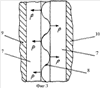 Укороченные кольца 7, расположенные между широкими кольцами 6, распираются в осевом направлении плоской браслетной пружиной 8 в местах контакта между ними совокупностью сил «р», обеспечивающей оптимальную суммарную силу поджатия укороченных колец 7 к торцам крышки 9 и фланца 10 и полную ликвидацию торцевого зазора между гибким колесом-вытеснителем 5 и крышкой 9 и фланцем 10.
