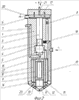 – фиг.3 – вариант исполнения гидроуправляемой форсунки для подачи топлива (продольный разрез) с двумя уровнями отверстий для впрыска и подпружиненными запирающими элементами;