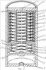 Фиг.1 – Гидропневматический аккумулятор с разделителем в виде поршня и регенератором в виде многослойной листовой пружины, осевой разрез.