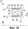 На фиг.2а и 2b в качестве примеров проиллюстрированы различные геометрические решения для существующих устройств подвода смазывающего материала. Как это можно видеть на фиг.2а, отверстия 38 локализованы на уровне второй дорожки качения 32, с каждой стороны от роликов 14. Таким образом, в этом случае смазочное масло имеет возможность циркулировать вдоль каждой стороны 26, 28 роликов 14 и поступать, например, в два канала прохождения А, В, представленные на фиг.1. Как это можно видеть на фиг.2b, отверстие 40 локализовано на наружной поверхности кольца 16. В этом случае смазочное масло циркулирует предпочтительным образом на задней по потоку стороне 28 ролика 14. Могут также использоваться два отверстия 40 на упомянутой наружной поверхности, или одно единственное отверстие 38 в дорожке качения, или любая другая комбинация этих технических решений.