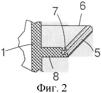 На фиг.2 показан радиальный разрез фартука 5 и примыкающие к нему участки основного тела 1 в соответствии с первым вариантом осуществления. Здесь видно, что фартук 5 на своей внутренней кромке имеет утолщение 7, которое входит во взаимодействие с поднутренным пазом, идущим по всей периферии фланца 8, который образует неотъемлемую составную часть основного тела 1. Такое устройство может быть создано, например, посредством того, что фартук 5 вместе с приформованным к нему утолщением 7 вставляется в экструзионный формующий элемент для изготовления основного тела 1, и материал основного тела 1 при впрыскивании обтекает утолщение 7.
