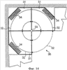 Центр радиусов находится на оси 33 вращения в углу шкафа 31, так что выдвижной ящик 32 может поворачиваться вокруг вертикальной оси при закрывании и для выдвижения выдвижного ящика 32 из шкафа 31 при открывании, как это показано пунктиром на фиг.10. Крышка (не показана) уплотняет верхнюю часть выдвижного ящика 32, когда выдвижной ящик 32 полностью закрыт внутри шкафа 31.