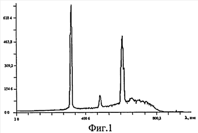 На фиг.1 изображен спектр двухфазного плазменного потока, на фиг.2 – спектр газовой фазы плазменного потока, на фиг.3 – схема устройства, реализующая предлагаемый способ определения температурного распределения разнородно нагретых частиц конденсированной фазы (гистограмма) в двухфазном плазменном потоке.