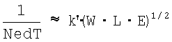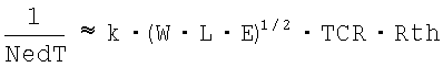 В документе FR 2,796,148, например, показано, что допуская что уровень смещения является достаточным того, чтобы электрический шум в детекторе доминировал в низкочастотной области (LFN), называемым 1/f шумом, что характеризует в основном аморфные материалы, тепловое разрешение определяется равенством: