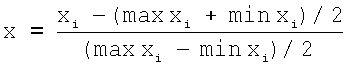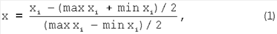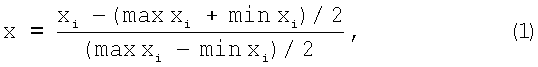где x – нормированное значение входного параметра; xi – компонента входного вектора; max xi и min xi – максимальное и минимальное значения компоненты, вычисленные по всей обучающей выборке.