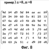 Входные значения обозначают следующим образом: количество необходимых квадратных матриц РМР как q, порядок расширения как n и размер матриц как m, при этом q квадратных матриц РМР с размером m M1, M2, ,Mq генерируют случайным образом для GF (2n). В блок-схеме последовательности выполнения операций, показанной на фиг.16, представлен пример обработки для количества квадратных матриц РМР q=6, порядка расширения n=8 и размер матрицы m=8.