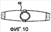 Фиг.10 изображает другой вариант настоящего изобретения, в котором зубная щетка особенно приспособлена для использования детьми. Такое использование улучшено посредством нанесения орнамента или карикатуры 44 на зубную щетку, например на ручку или на любое другое пригодное место, включая заднюю сторону головки. Такой орнамент 44 мог бы быть установлен с возможностью съема таким образом, чтобы он мог бы сохраняться ребенком после того, как зубную щетку выбросят. Другие аспекты настоящего изобретения, которые делают его желательным для использования детьми, включают возможности распределения различных видов средств для ухода за полостью рта, включая средства, обладающие специальным приятным вкусом, средства для заморозки зубов, средства для снижения чувствительности зубов или различные лекарственные средства.