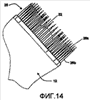 Ручка 14 дополнительно может содержать выемки, выпуклости или уступы, выступающие от частей ее поверхности и создающие декоративный внешний вид ручки 14, и улучшает захват ручки 14 во время использования зубной щетки 10. Выемки могут быть образованы из того же материала, как мягкие эластомерные части 18 ручки 14, или из того же материала, как основная часть ручки 14 (например, жесткого материала, такого как полипропилен). Вся или часть ручки 14 могла бы быть выполнена из любого пригодного материала, такого как пластмасса, дерево, металл или различные натуральные материалы, которые подвержены микробиологическому разрушению.
