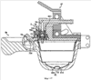 На фиг.21-23 приведен возможный вариант выполнения инжектора. В данном конкретном случае инжектор имеет сопло 751, в котором сделан канал, имеющий прямолинейную ось 750 и проходящий от впускного отверстия 76 к выпускному отверстию 79. Иными словами, выпускное отверстие 79 под давлением жидкости располагается по направлению дна чашки 40, по существу, вертикально. Уход за каналом теперь производить легче. Легко отсоединить этот канал, когда он забит твердыми частицами (остатки окалины, кофейные зерна и т.п.), чем канал, имеющий изгиб или различный наклон.