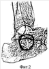 Фиг.3 – Схема-пример на подтаранном суставе. Вид во фронтальной плоскости после разворота трансплантата. Зона сустава перерыта.