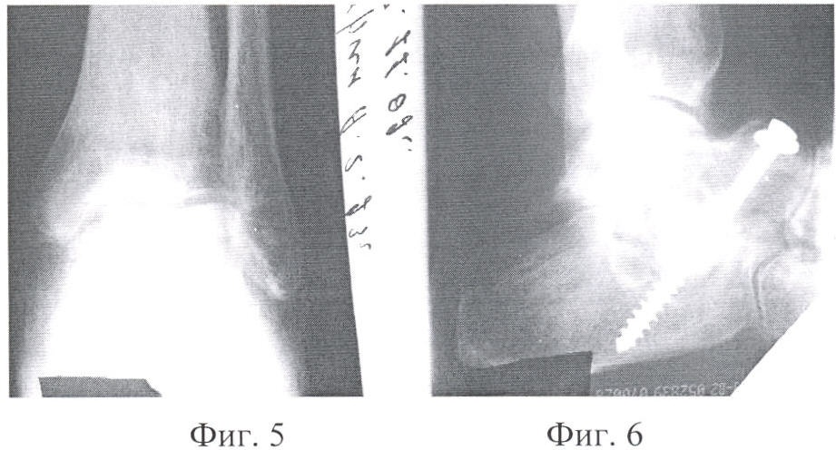 Фиг.5 – Контрольная рентгенограмма подтаранного сустава после артродеза заявленным способом и остеосинтеза трансплантатов винтом в прямой проекции.