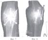 Фиг.9 – Рентгенограмма коленного сустава той же больной до операции, имеется дефект мыщелка большеберцовой кости в прямой проекции.