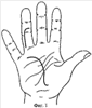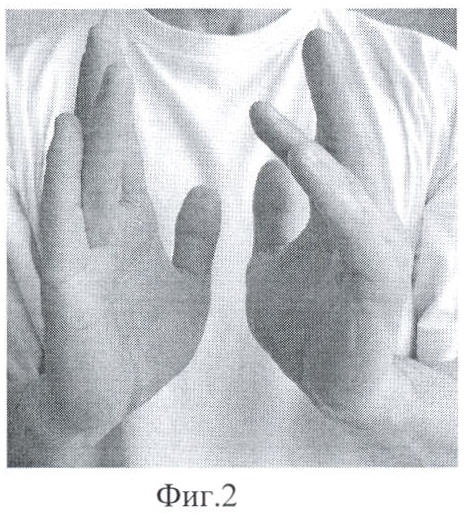 фиг.1 изображает кисть с ладонной стороны и нанесенными на ней линиями S-образного и «клюшкообразного» разрезов;