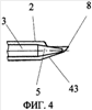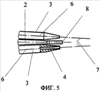 на фиг.4 изображены в увеличенном размере заостренные концы продолговатых тел и заостренный выступ базового тела, вид сбоку;