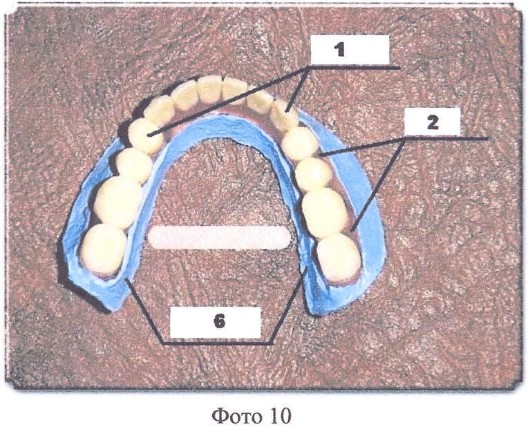 Фото 10. Протезы на верхнюю и нижнюю челюсти, где: