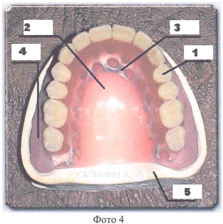 Фото.4. Протез на верхнюю челюсть, где: